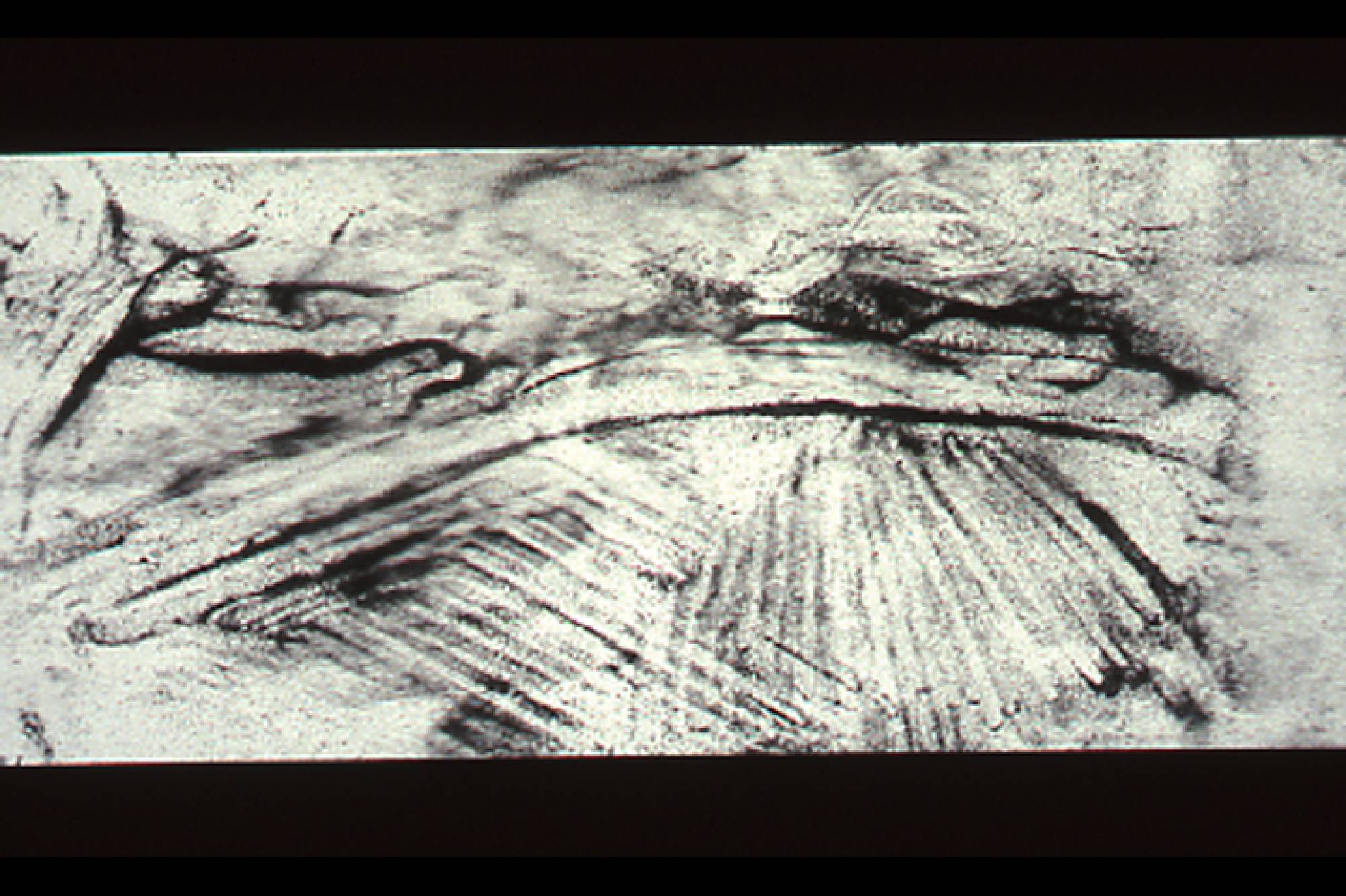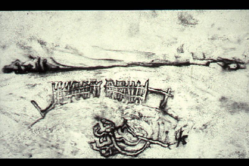 My sand drawings, drawlings, are elegies of loss and absence. Each image formed through its own displacement, lines formed through the removal of sand, laments the condition of its exile. Each drawing is a moment rooted in rootlessness. Simultaneously, it represents the speed with which the mark is made and the ease with which it can be erased.