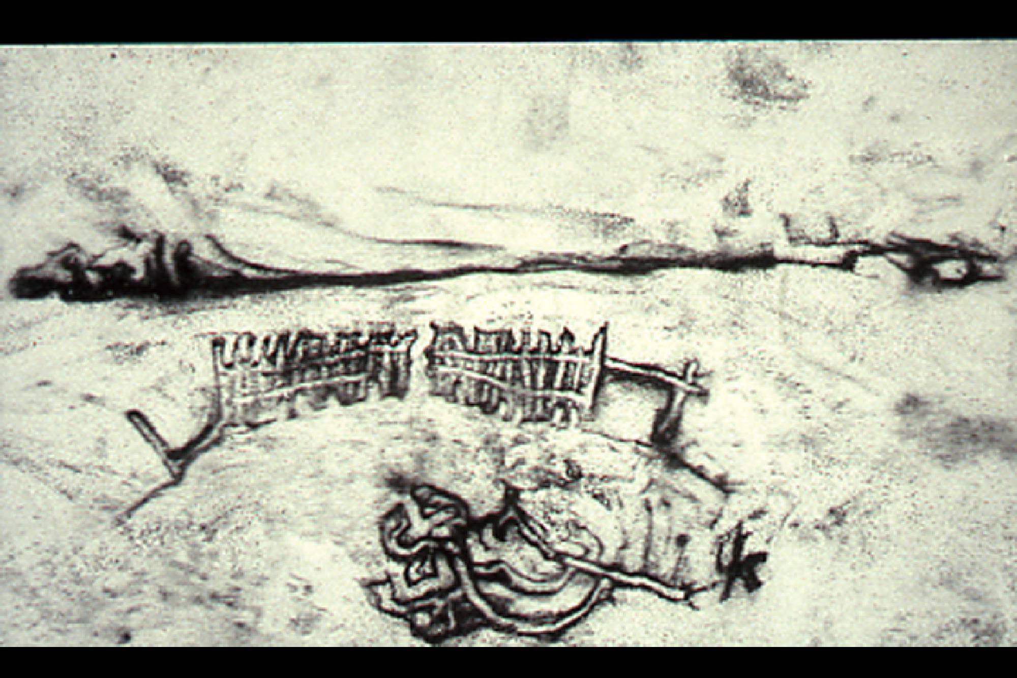 My sand drawings, drawlings, are elegies of loss and absence. Each image formed through its own displacement, lines formed through the removal of sand, laments the condition of its exile. Each drawing is a moment rooted in rootlessness. Simultaneously, it represents the speed with which the mark is made and the ease with which it can be erased. We are like grains of sand upon a field, gathering in pockets, only to be subject to our inevitable displacement. My drawlings embody a moment of transformation. Their movement elegizes the erosion of the land, the whip of wind that scatters dust. They depict the presence of a shadow, the play of light through air, the threadbare homestead no longer in existence, a drawing based on the blurred photograph you barely recall.