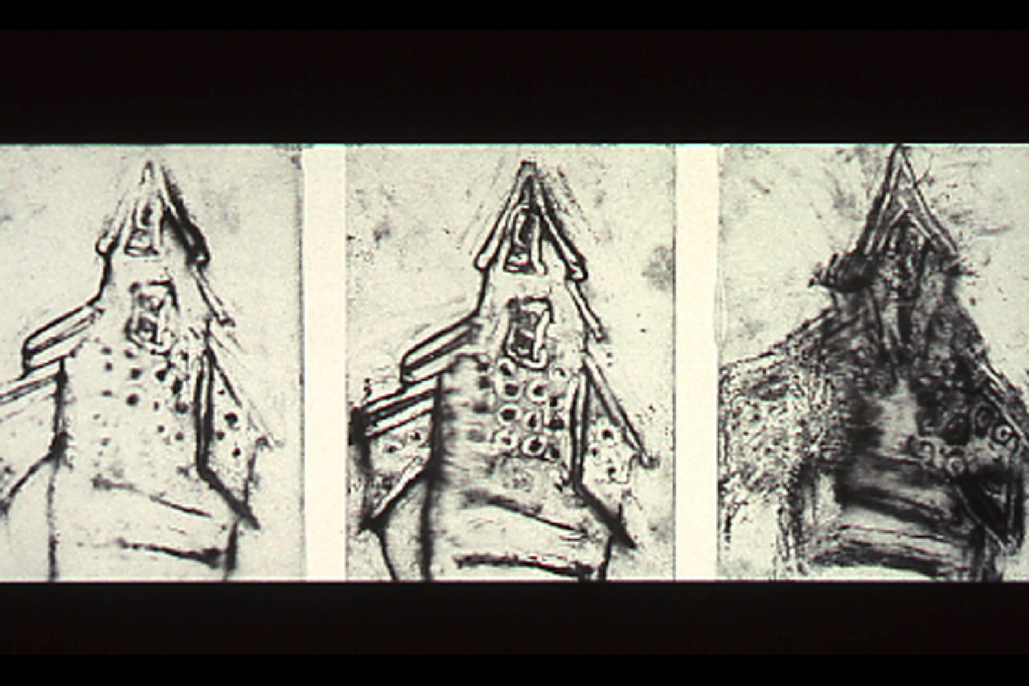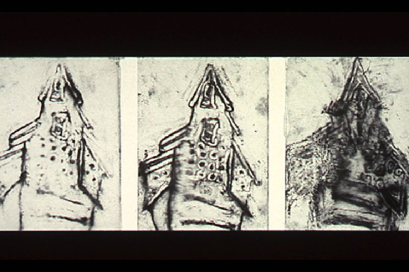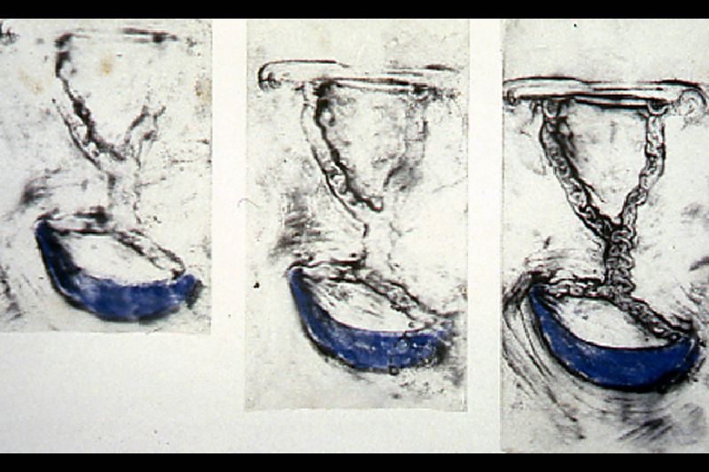 In their fragility, the drawings reflect our own flimsy casing, each surface a transparent skin. Like celluloid, they act as a screen for our own psychological projections-- an atmosphere colored and clouded by ambivalence. Drawlings examine the residuals of experience, the complex nature of our own mortality. They embody the hometown you cannotreturn to, the place that was yours, now in memory more intimately possessed.