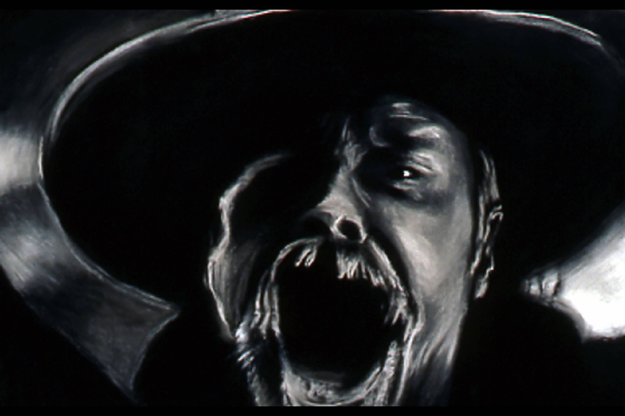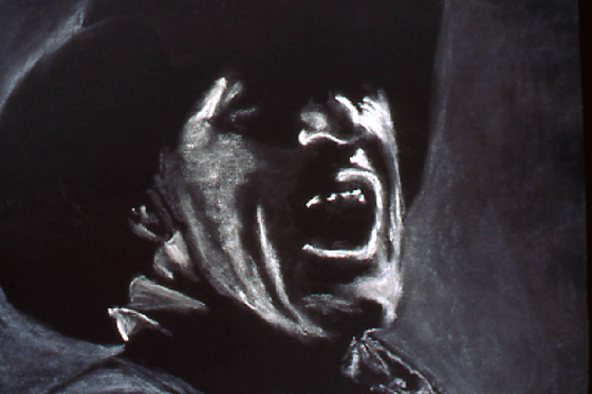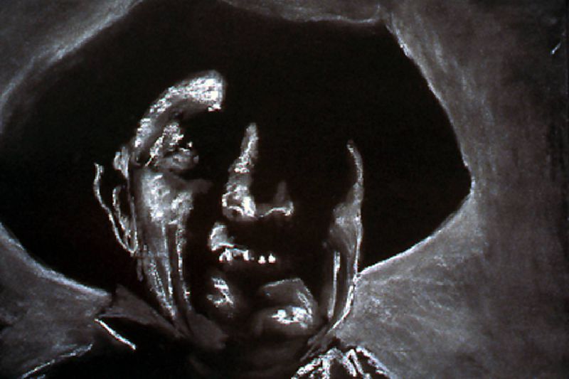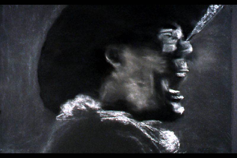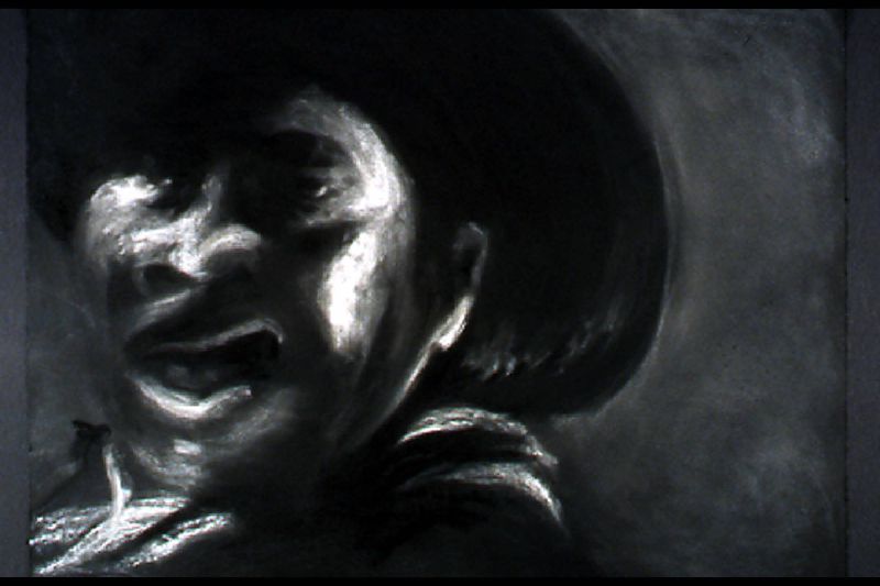 The Range Series drawings, inspired by the cinematic climax of the film The Last Picture Show, revisits the death scene of cinema itself. Within the movie, The Last Picture Show, we are witness to the death of a small Texas town as symbolized by the closing of its movie house. In the theater’s final screening, we see a short scene from the movie, Red River, savored by the town’s few remaining residents. In it, cowboy's cattle call, like talking heads in extreme close-up, to start the long cattle drive in a movie about progress and movement, laid within a movie about decline and inertia. My drawings, like a movie still, are frames frozen in time, caught somewhere between ecstasy and agony. They act as artistic remnants of our own psychological ambivalence – we are the West, both projected hero and fallen icon. Somewhere between pleasure and pain, these images flicker forever in the psyche-- manifest as a shimmering, mirage-like myth in the cultural imaginary.