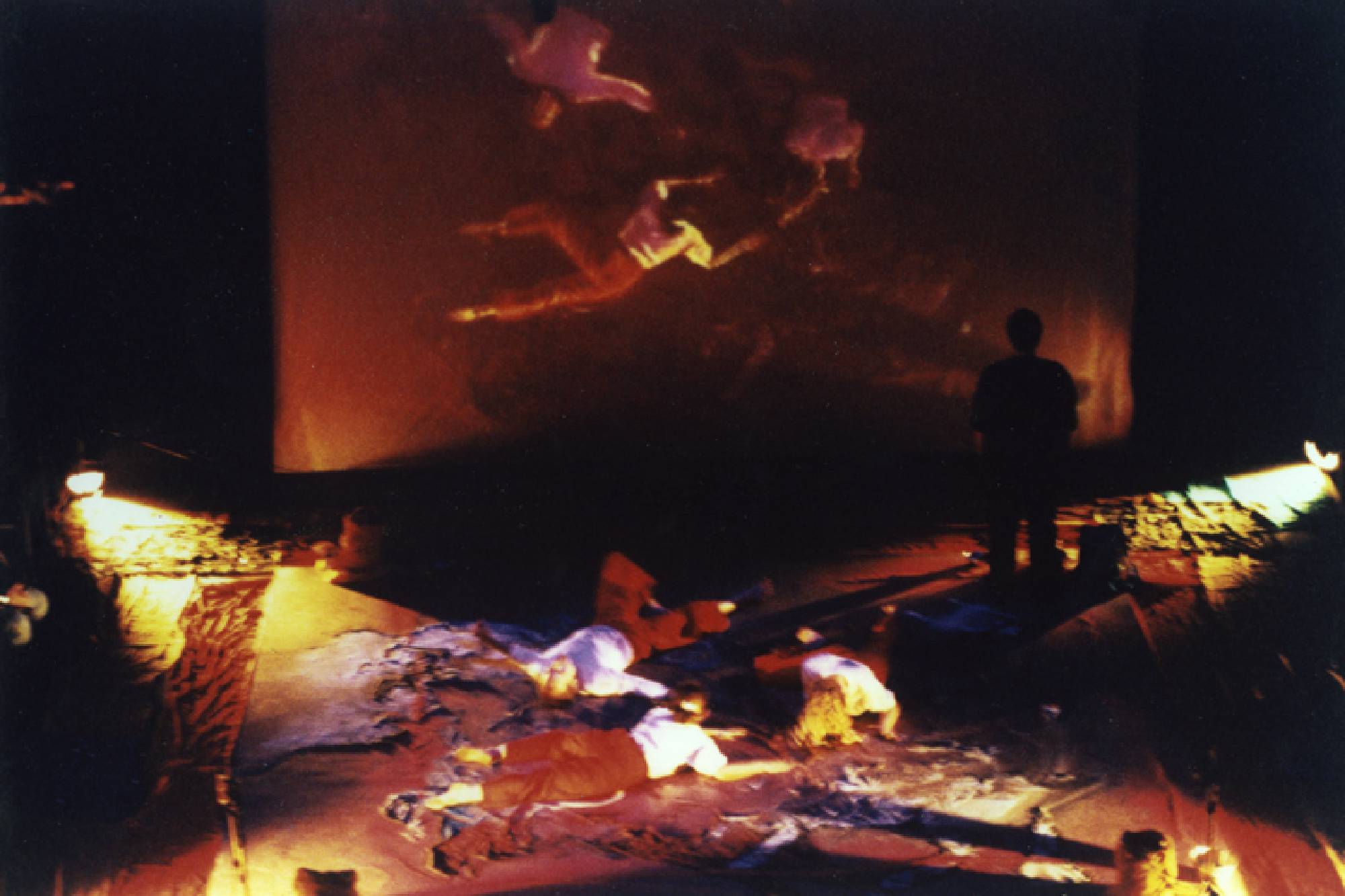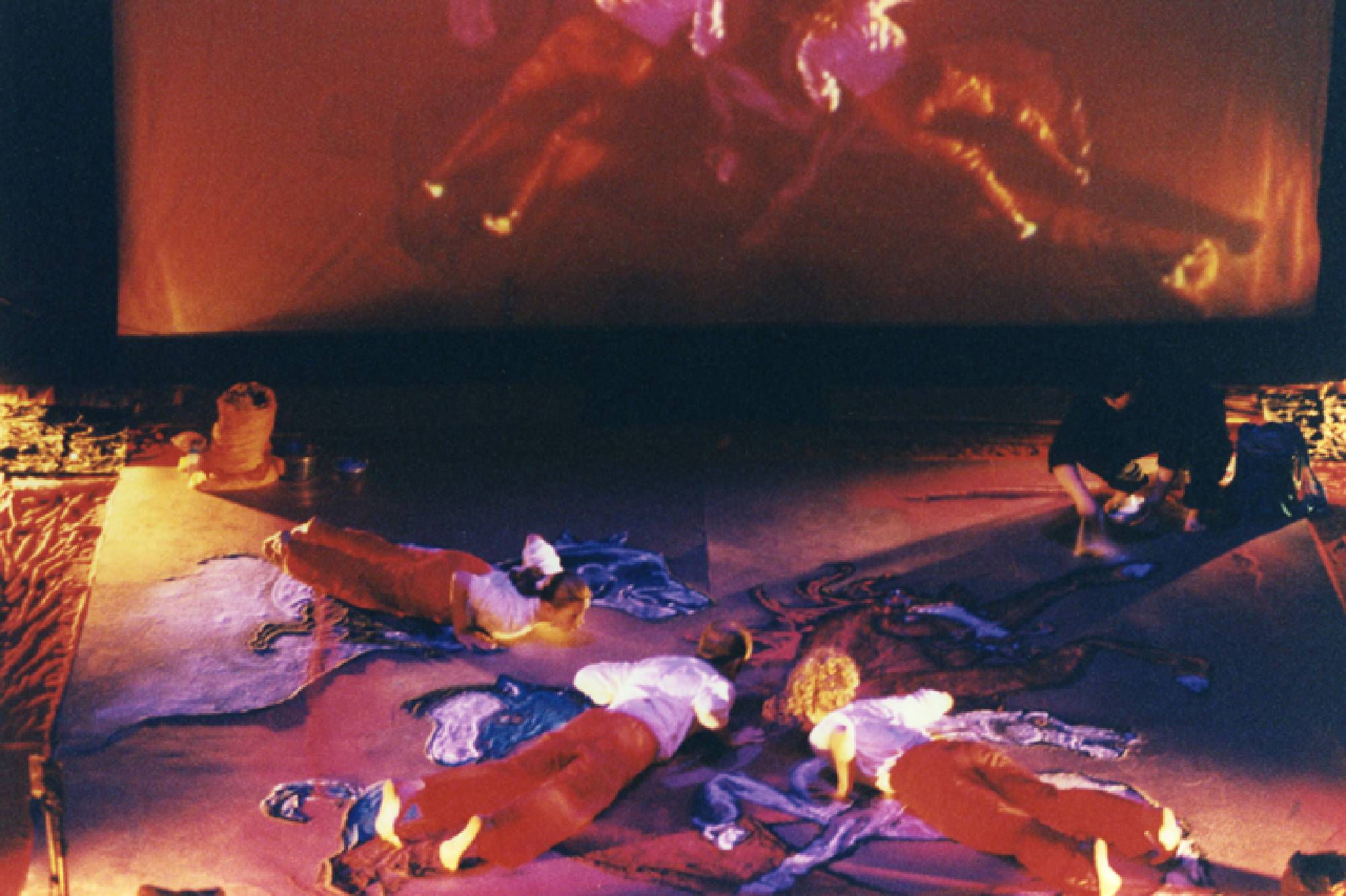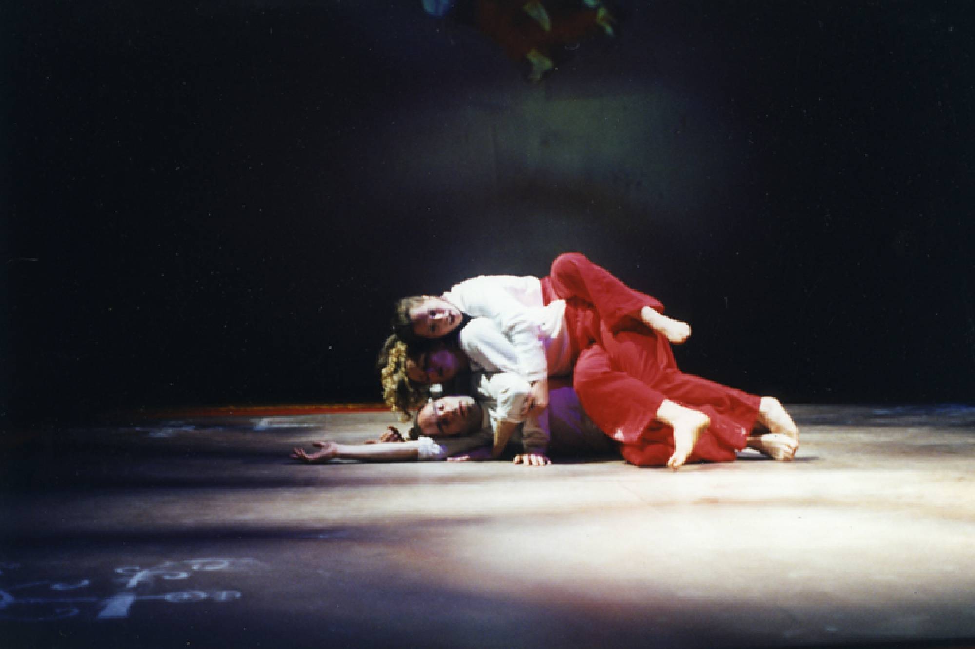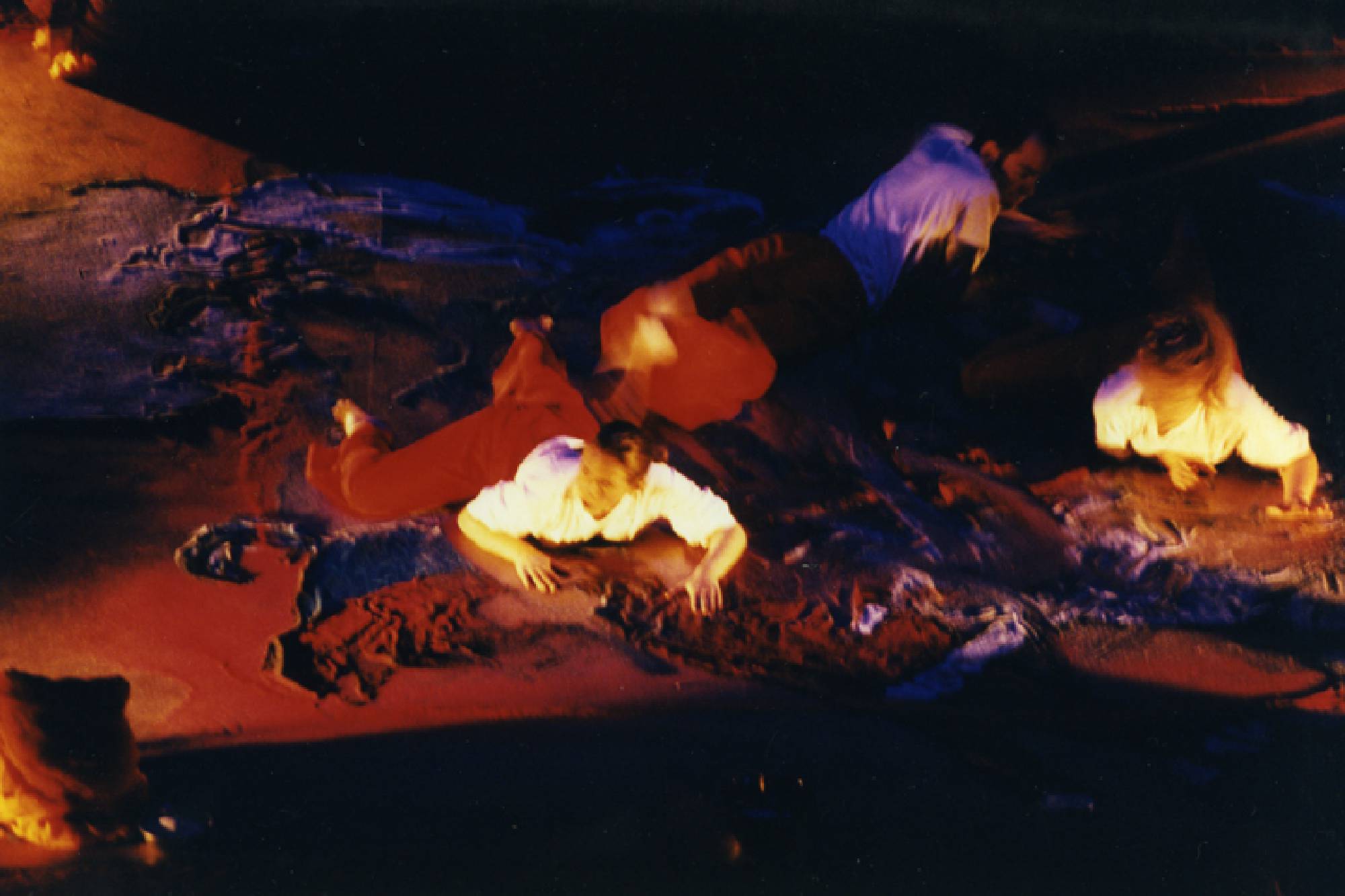 RED HORSE is a reconstruction of The Red Horse Animation, Mabou Mines' first theatrical piece, created in 1970. The version described here was resurrected 25 years later as a postmodern dance piece by the 2nd generation of Mabou artists, Clove Galilee (daughter of artistic founders Ruth Maleczech & Lee Breuer) & David Neumann (son of company members Fred Neumann & Honora Fergusson), both of whom performed in the piece. Directed & choreographed by Ms. Galilee with set design and sand painting by Jenny Rogers. Original theatrical text written by avant garde director / poet Lee Breuer.