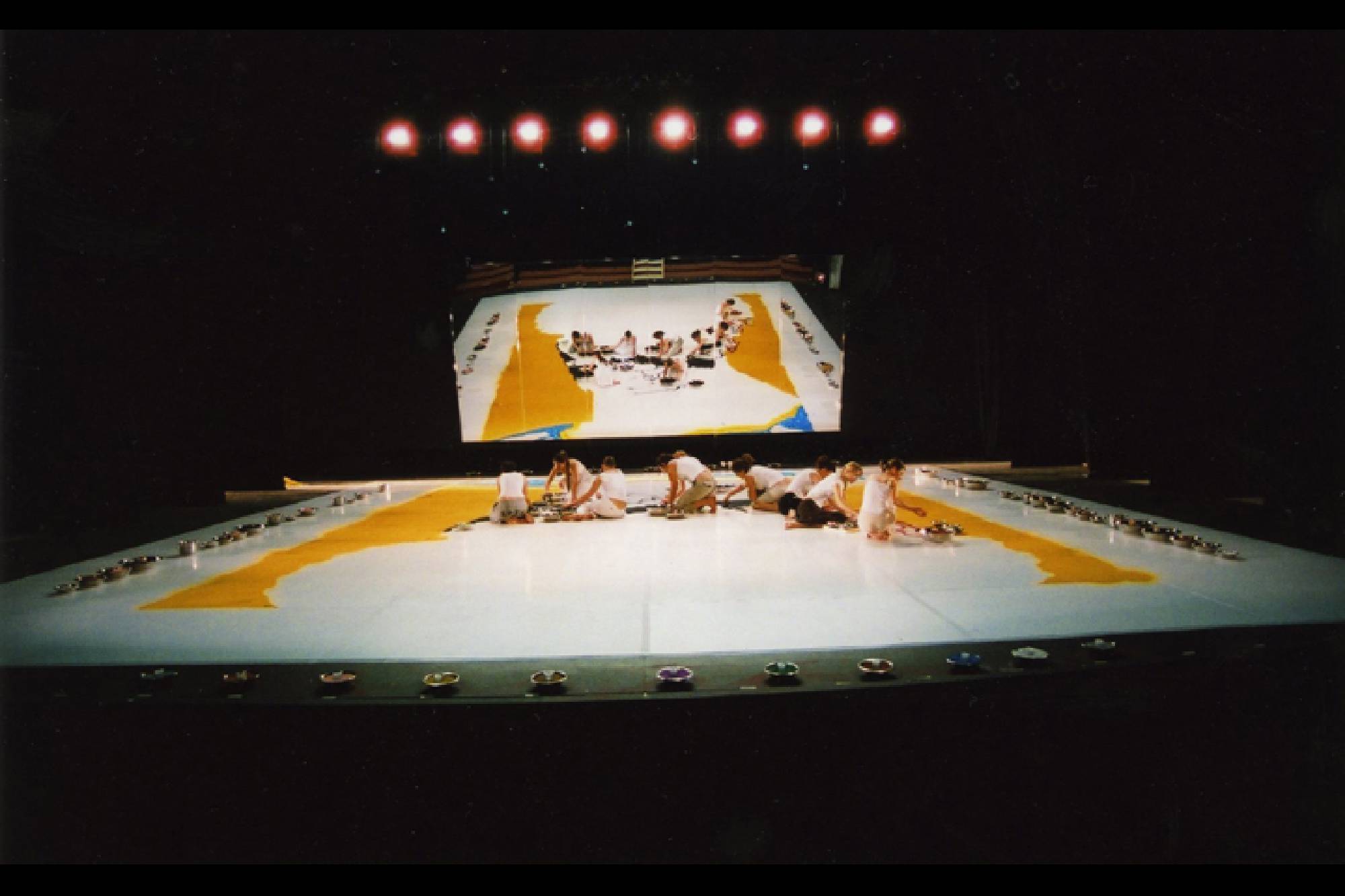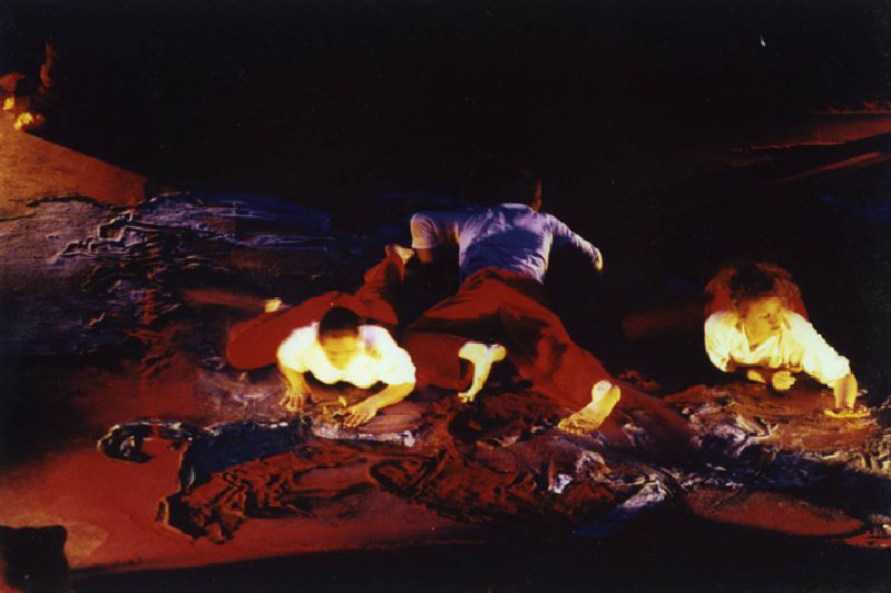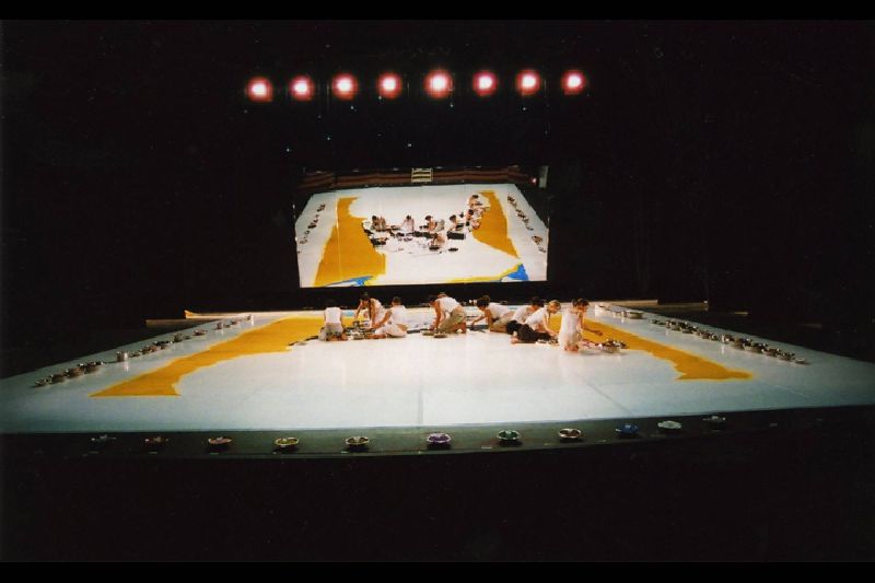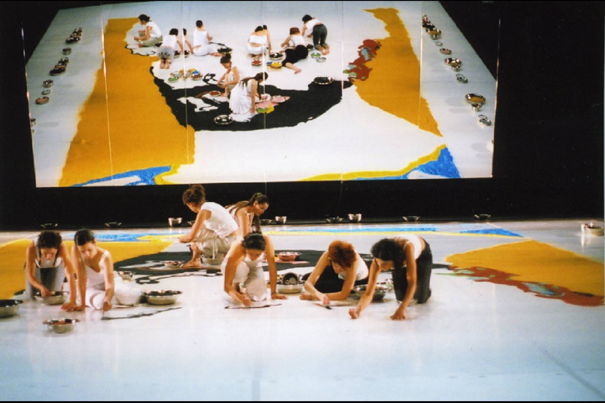 RED HORSE was created through a 6-week residency at the University of California, Santa Cruz. The play was later presented as a “work-in-progress” in a series of performances at the University’s theater center Main Stage. It was in Santa Cruz that elements of the set design, including the elaborate construction of the sand painting were first developed. While in residence, Jenny also worked closely with director / choreographer Clove Galilee on the integration of the sand into the choreography of the play and the effects that the sand would have on the dancers' ability to move.