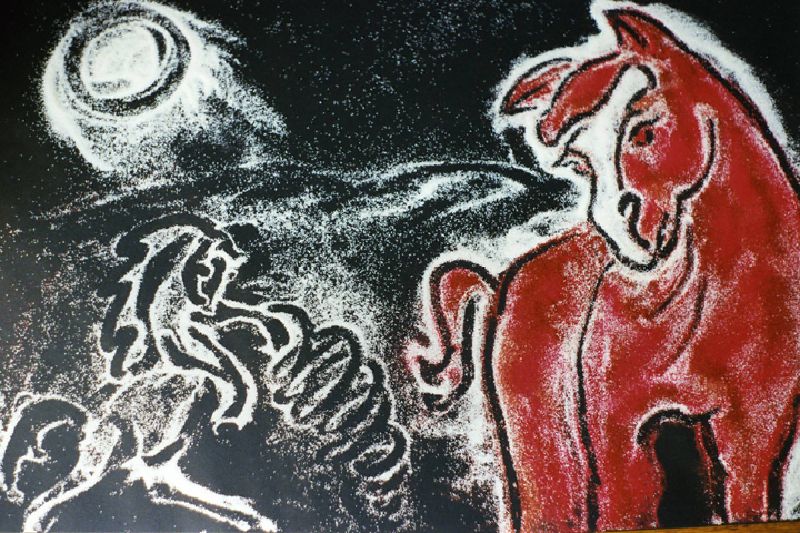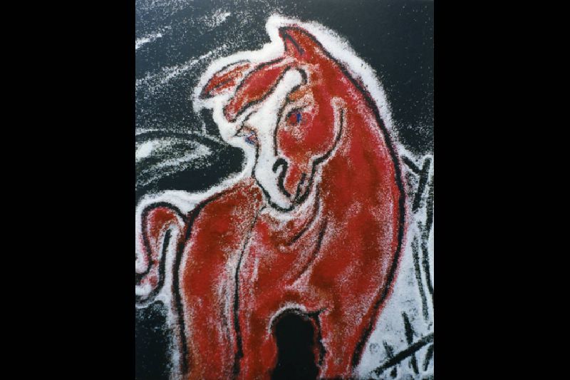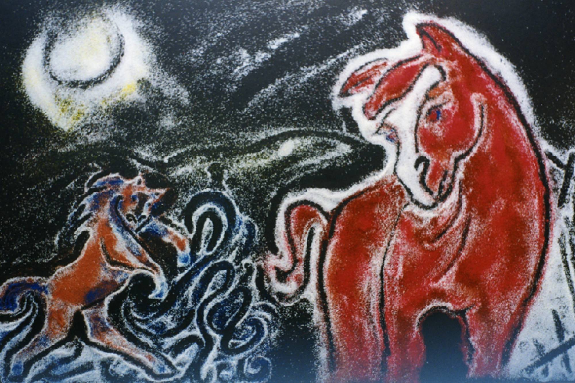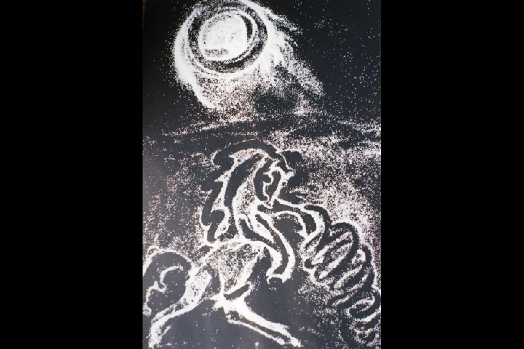 The Little Red Horse is a children’s book about the difficult subject of slavery. Illustrated by sand paintings, an art form indigenous to cultures around the world, specifically those scattered across the African Diaspora, the story follows the adventure of the rebellious Little Red Horse making her escape across the Gobi Desert after the death of her father, Daily Bread.