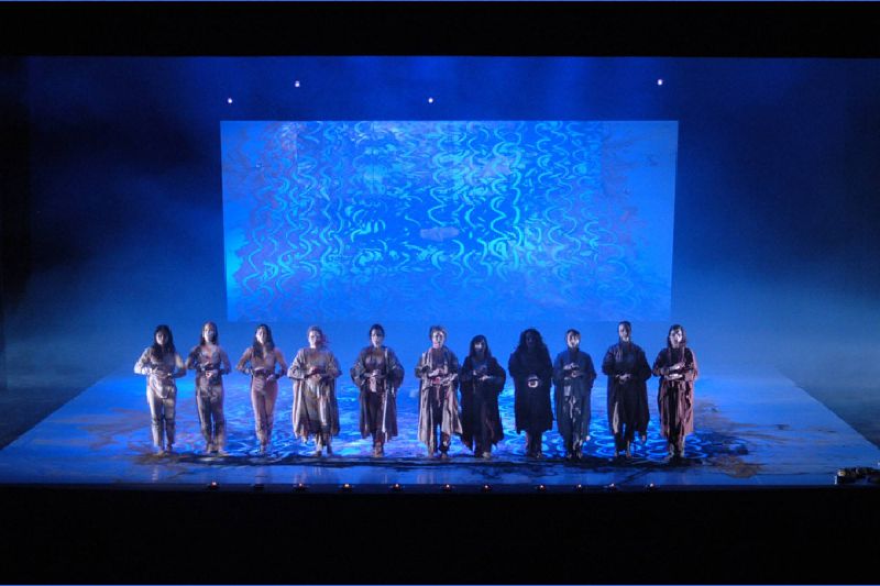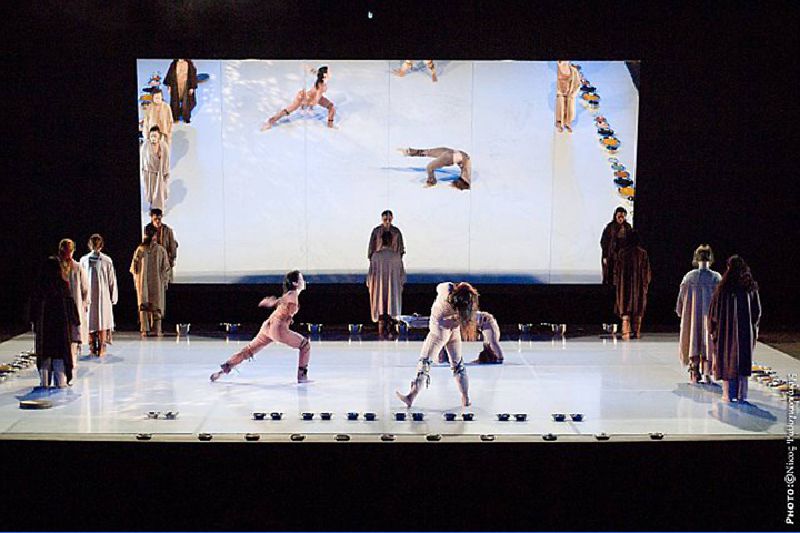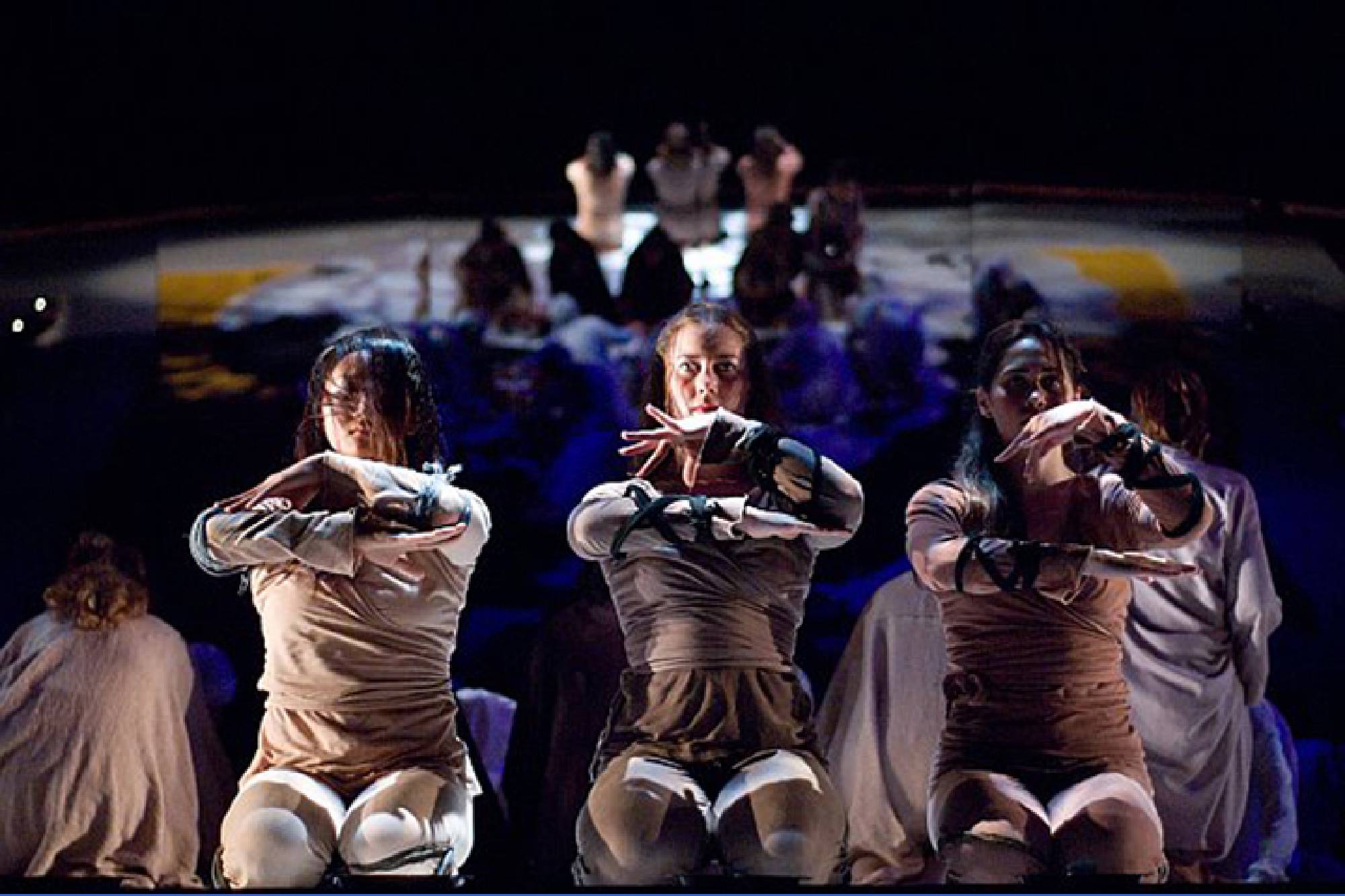 The play, CHOEPHORAE, a modern production of Aeschylus’ The Libation Bearers, (“Choephorae” in ancient Greek), features an all female cast, playing male & female roles throughout the play, in an international collaboration between a U.S and Greek company, which opened the Patras Festival in Patras, Greece, the Cultural Capital of Europe for 2006.