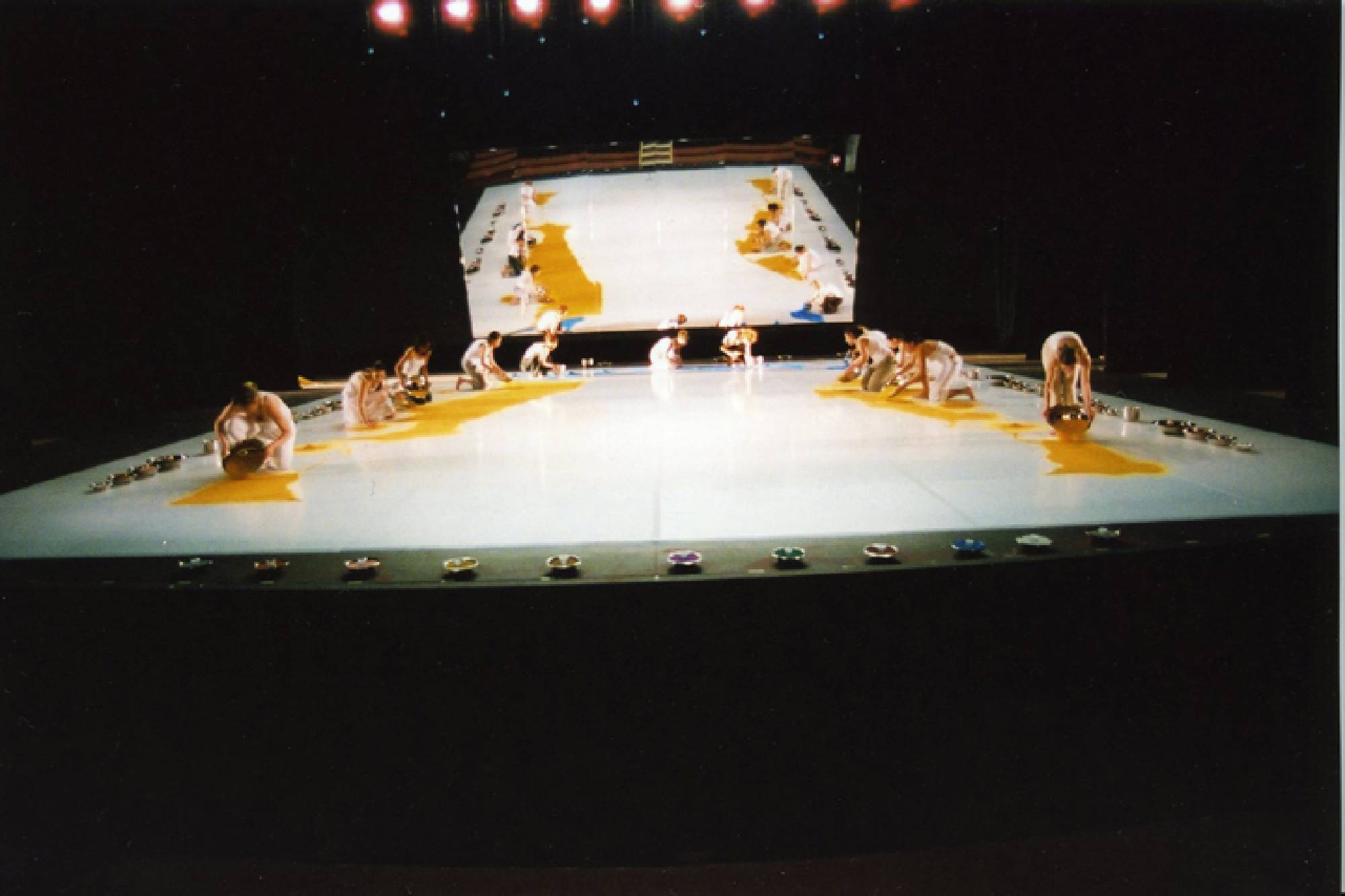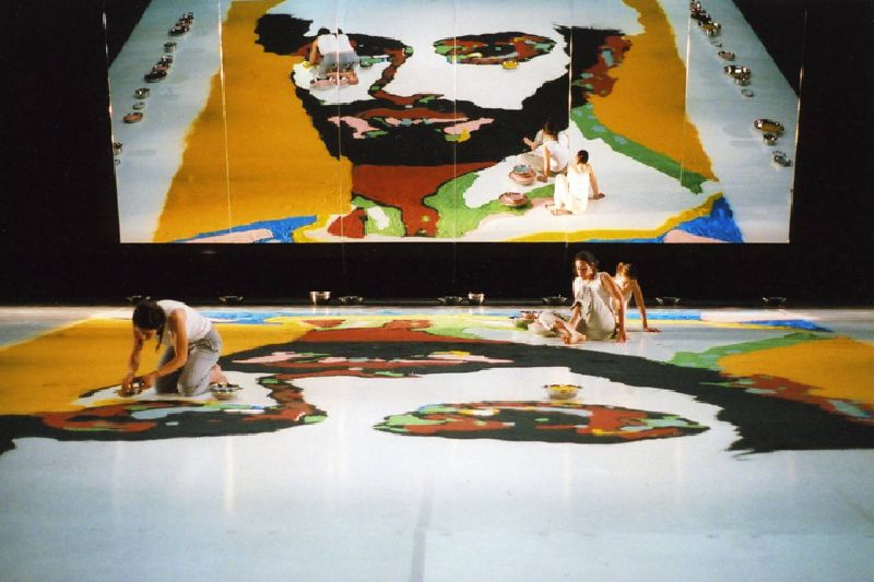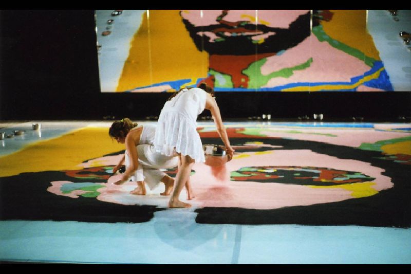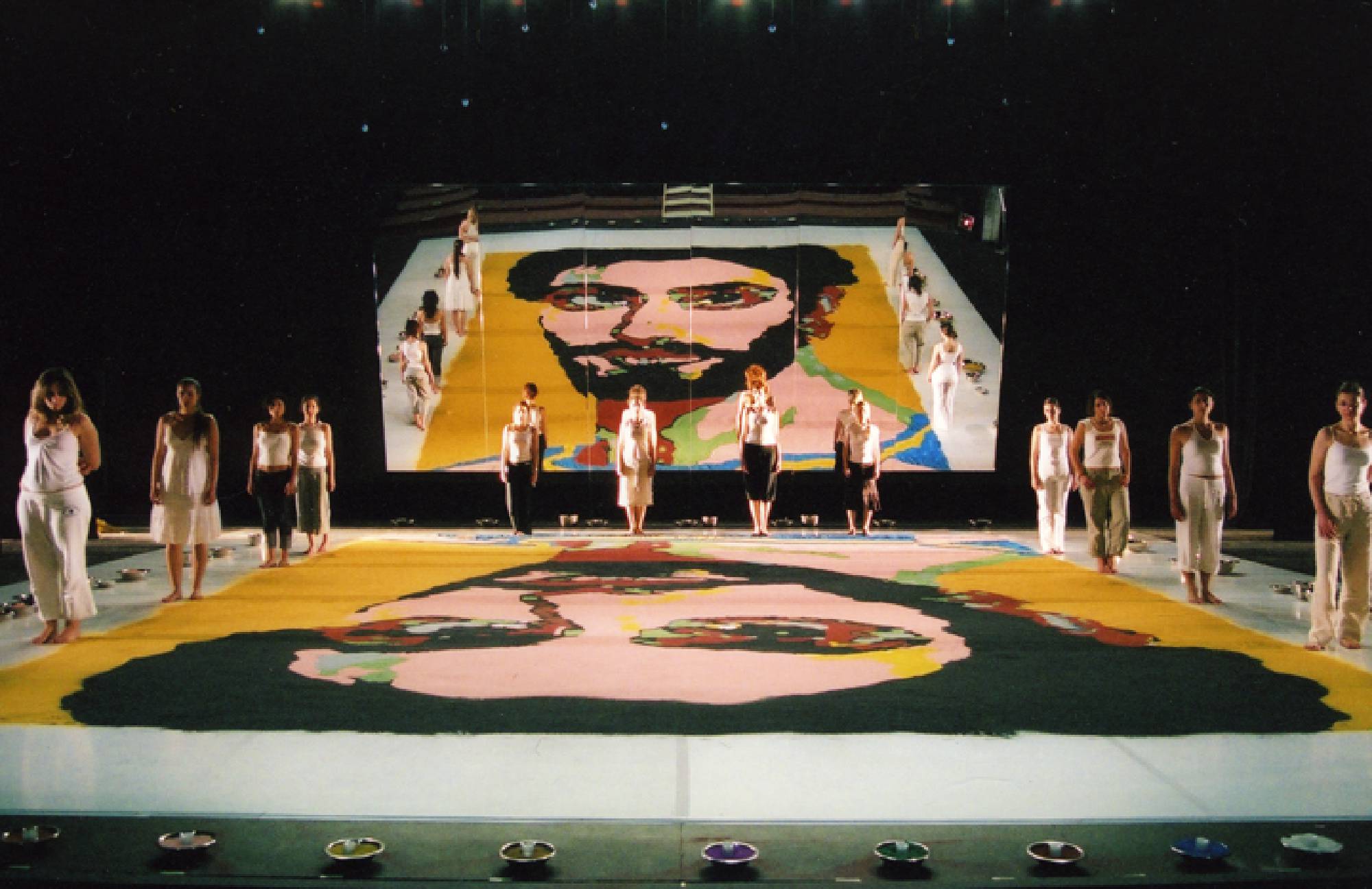 Commissioned as the set designer for the all female production, Ms. Rogers’ design required 700 lbs of sand per performance to complete a sand painting which filled the entire stage --32 ft x 24 ft . In addition, her set design included 6 mirrors, (each 12 ft x 4 ft), hung together as one huge mirror at the back of the stage so the painting could be viewed from two planes.