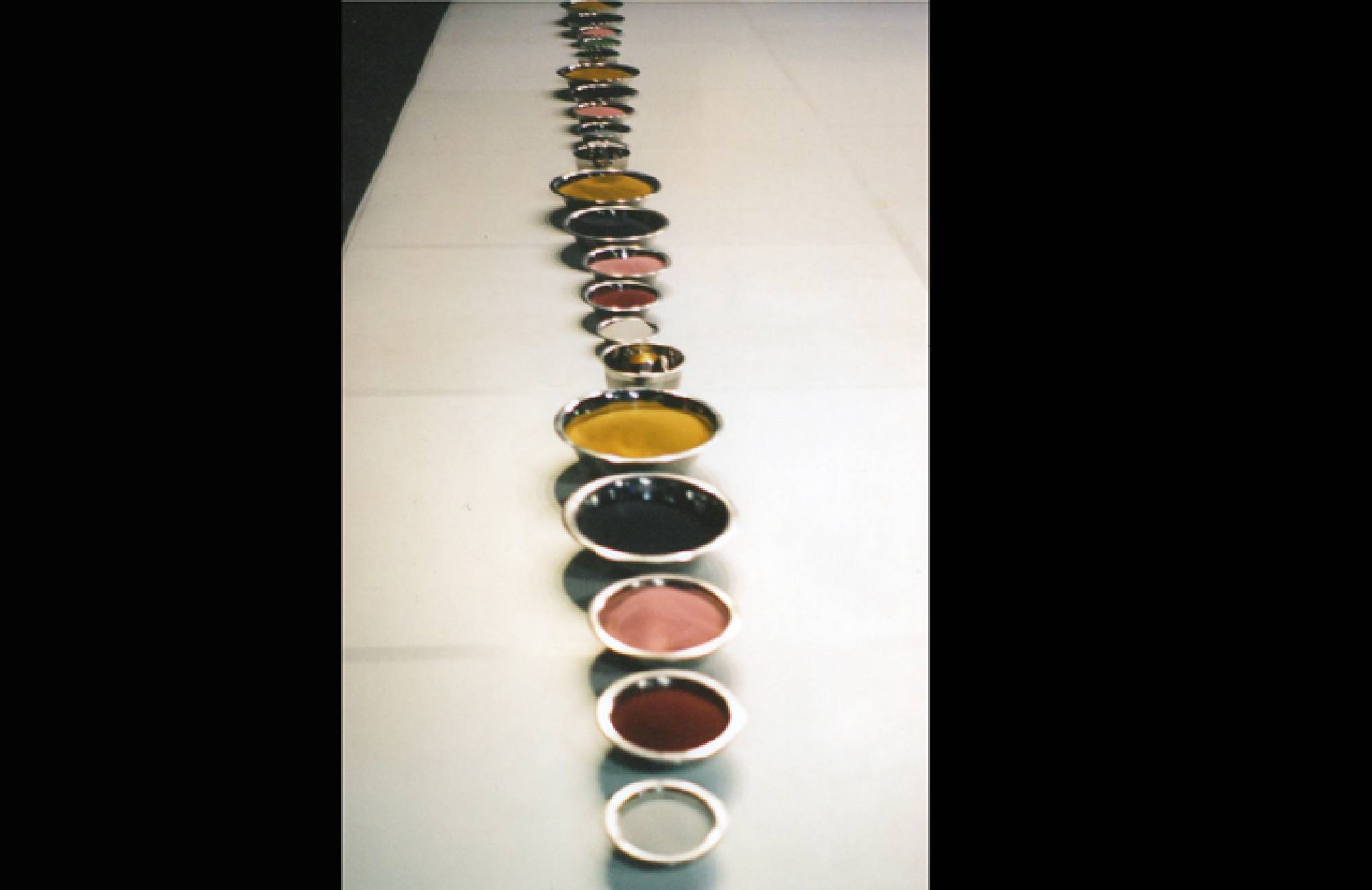 The design & dimensions of the sand painting for RED HORSE differed according to each tour venue, ranging in size from 10 x 15 feet to 25 x 40 feet . The opening sand painting took Ms. Rogers 10 hours each day to create & was destroyed in the first 5 minutes of the play. The piece was originally developed in residence at the University of California, Santa Cruz, later traveling to New York City and Rio de Janiero, Brazil.